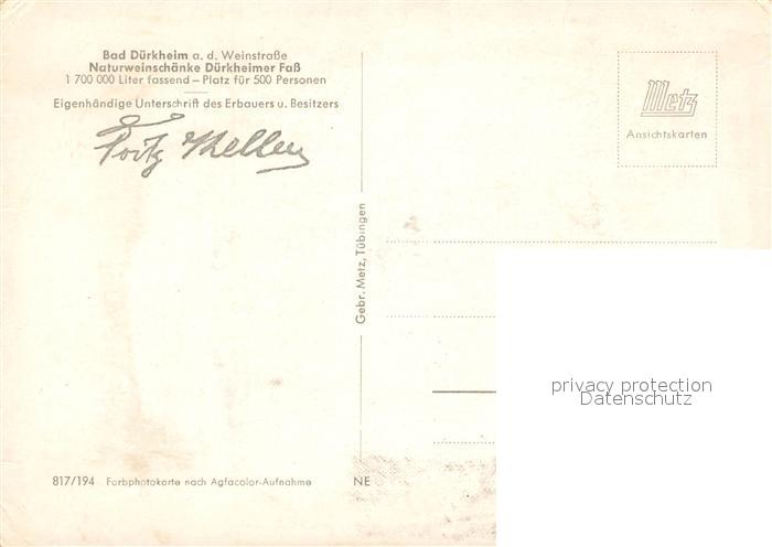 73023915 Bad Duerkheim Duerkheimer Fass postalisch nicht gelaufen Erhaltung siehe scans [KathaD81] KatCode: 11110007332002