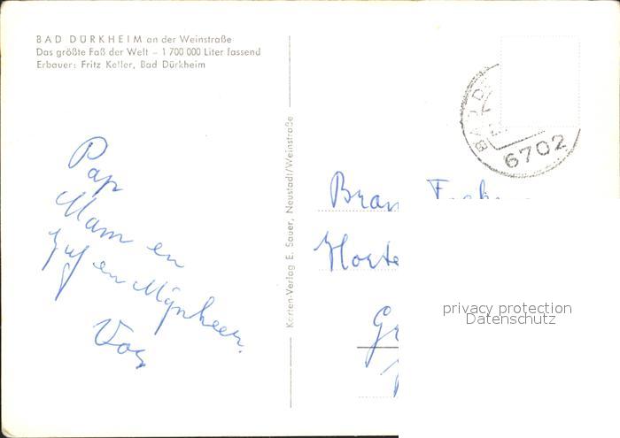 72347504 alte Postkarte Bad Duerkheim Duerkheimer Fass postalisch gelaufen Erhaltung siehe scans KatCode: 11110007332002