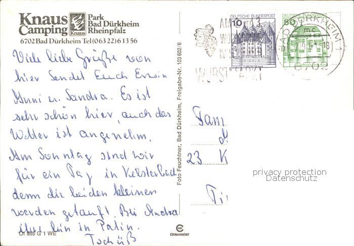 71998664 alte Postkarte Bad Duerkheim Fliegeraufnahme Knaus-Camping postalisch gelaufen Erhaltung siehe scans KatCode: 11110007332002