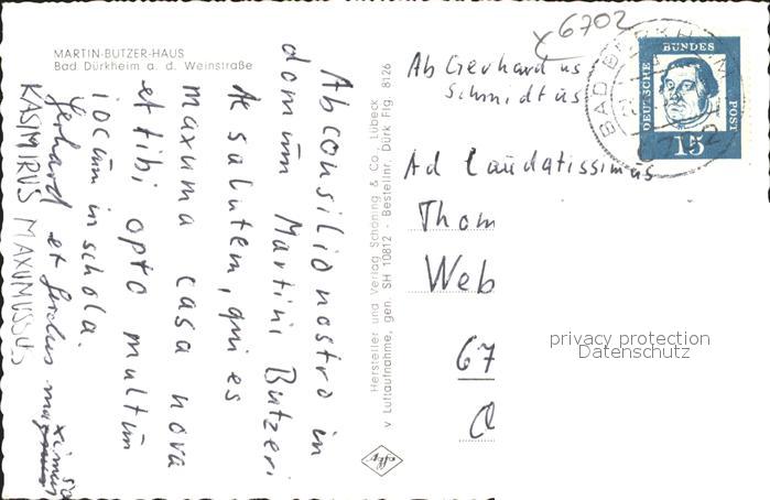 41793268 alte Postkarte Bad Duerkheim Fliegeraufnahme Martin Butzer Haus postalisch gelaufen Erhaltung siehe scans KatCode: 11110007332002