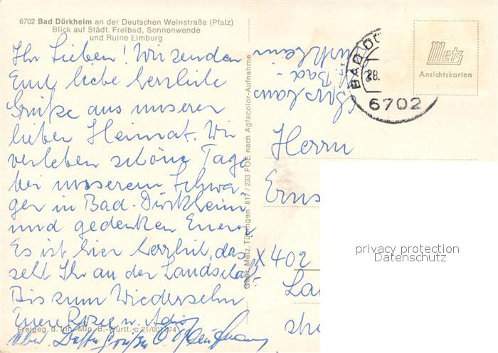 73679520 alte Postkarte Bad Duerkheim Fliegeraufnahme Weinstrasse postalisch gelaufen Erhaltung siehe scans [LiesaD40] KatCode: 11110007332002