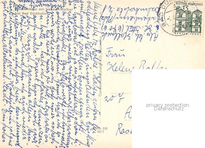 72967897 alte Postkarte Bad Duerkheim Forellenhaus am Isenach Weiher postalisch gelaufen Erhaltung siehe scans [LiesaD40] KatCode: 11110007332002