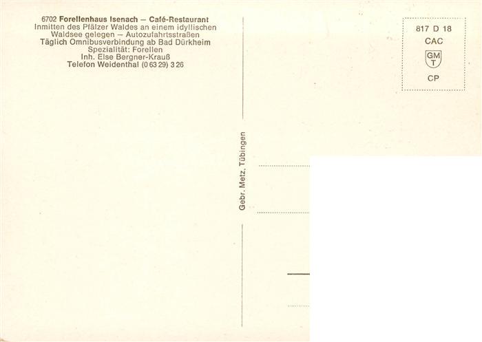 73896321 Bad Duerkheim Forellenhaus Isenach Cafe Restaurant Terrasse postalisch nicht gelaufen Erhaltung siehe scans [FriedD77] KatCode: 11110007332002