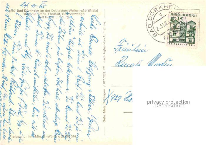72850928 alte Postkarte Bad Duerkheim Freibad Ruine Limburg Fliegeraufnahme postalisch gelaufen Erhaltung siehe scans [NatalD47] KatCode: 11110007332002