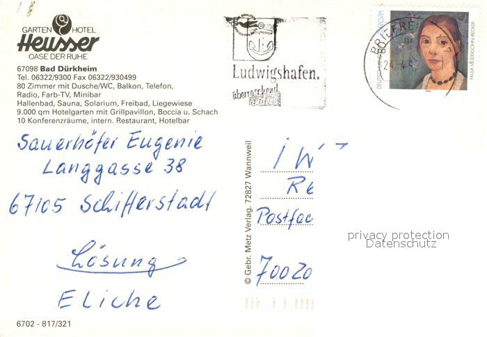 73652701 alte Postkarte Bad Duerkheim Garten-Hotel Heusser Garten Swimming Pool postalisch gelaufen Erhaltung siehe scans [FriedD77] KatCode: 11110007332002