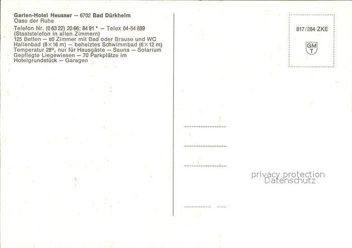 72548299 Bad Duerkheim Garten-Hotel-Heusser Terrasse postalisch nicht gelaufen Erhaltung siehe scans [LiesaD40 kv019box] Lies Katcode 11110007332002