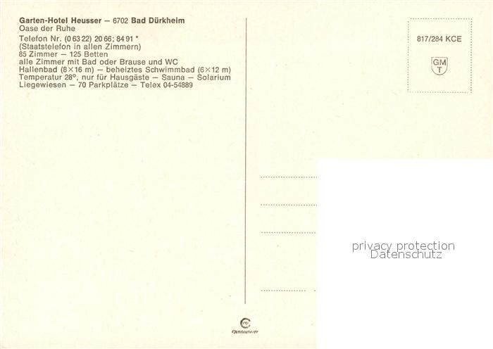 73174528 Bad Duerkheim Garten-Hotel Heusser Terrasse postalisch nicht gelaufen Erhaltung siehe scans [LiesaD40] KatCode: 11110007332002