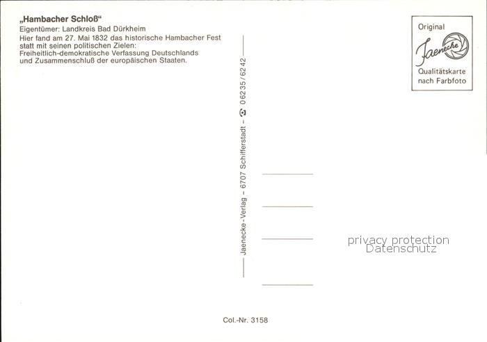 72530714 Bad Duerkheim Hambacher Schloss postalisch nicht gelaufen Erhaltung siehe scans [AndreD76 kv009box] KatCode: 11110007332002