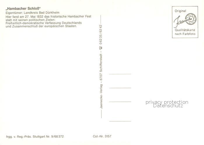 73775290 alte Postkarte Bad Duerkheim Hambacher Schloss Fliegeraufnahme postalisch gelaufen Erhaltung siehe scans [WerneD78] KatCode: 11110007332002