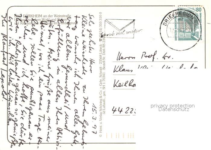 73685809 alte Postkarte Bad Duerkheim Heilbad zwischen Wald und Reben mit Klosterruine Homburg Fliegeraufnahme postalisch gelaufen Erhaltung siehe scans [WerneD78] KatCode: 11110007332002
