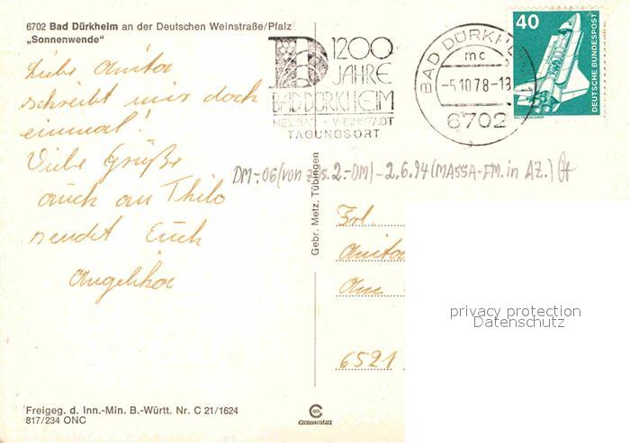 72724255 alte Postkarte Bad Duerkheim Klinik Sonnenwende Fliegeraufnahme postalisch gelaufen Erhaltung siehe scans [FriedD77] KatCode: 11110007332002