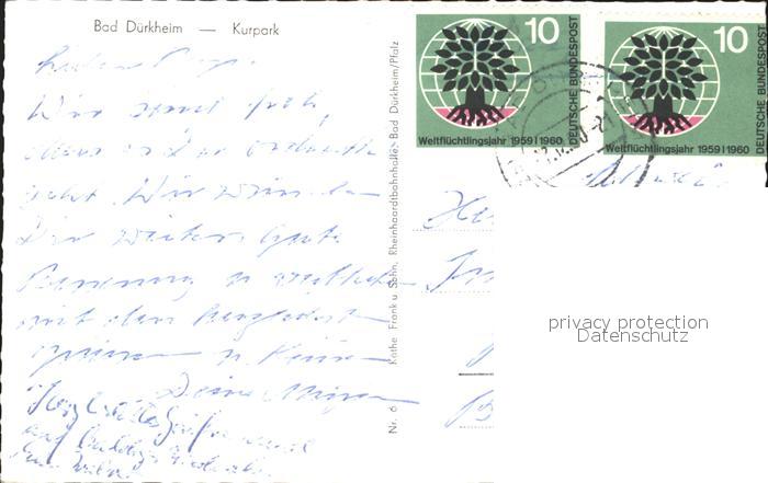 72312697 alte Postkarte Bad Duerkheim Kurpark postalisch gelaufen Erhaltung siehe scans KatCode: 11110007332002