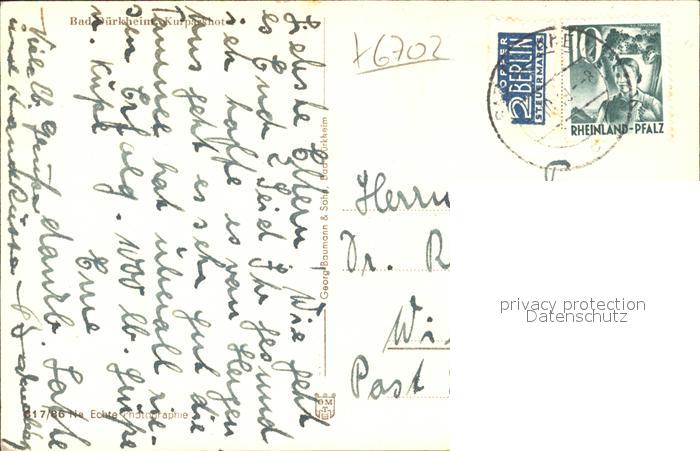 41793254 alte Postkarte Bad Duerkheim Kurpark-Hotel postalisch gelaufen Erhaltung siehe scans KatCode: 11110007332002