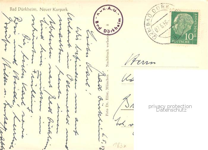 73784656 alte Postkarte Bad Duerkheim Kurpark postalisch gelaufen Erhaltung siehe scans [LiesaD40] KatCode: 11110007332002