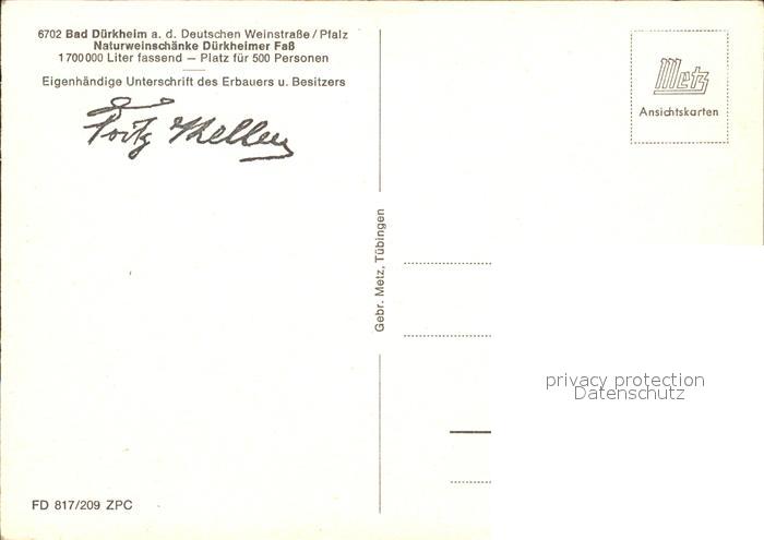 72505966 Bad Duerkheim Naturweinschaenke Duerkheimer Fass postalisch nicht gelaufen Erhaltung siehe scans KatCode: 11110007332002