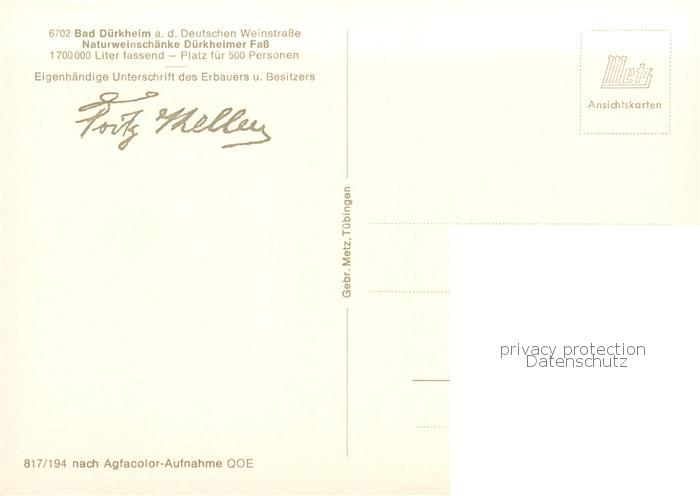 73804331 Bad Duerkheim Naturweinschaenke Duerkheimer Fass postalisch nicht gelaufen Erhaltung siehe scans [WerneD78] KatCode: 11110007332002