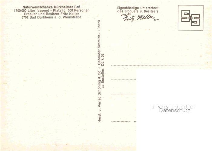 72913885 Bad Duerkheim Naturweinschaenke Duerkheimer Fass postalisch nicht gelaufen Erhaltung siehe scans [KathaD81] KatCode: 11110007332002