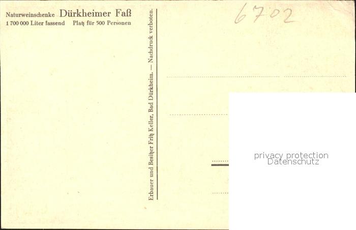 41792754 Bad Duerkheim Naturweinschenke Fass postalisch nicht gelaufen Erhaltung siehe scans KatCode: 11110007332002