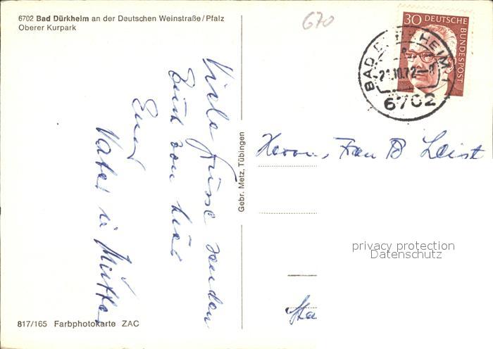 72603512 alte Postkarte Bad Duerkheim Oberer Kurpark postalisch gelaufen Erhaltung siehe scans [FriedD77] KatCode: 11110007332002