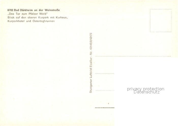 73746086 Bad Duerkheim Oberer Kurpark mit Kurhaus Kurparkhotel und Ostertagbrunnen Fliegeraufnahme postalisch nicht gelaufen Erhaltung siehe scans [WerneD78] KatCode: 11110007332002