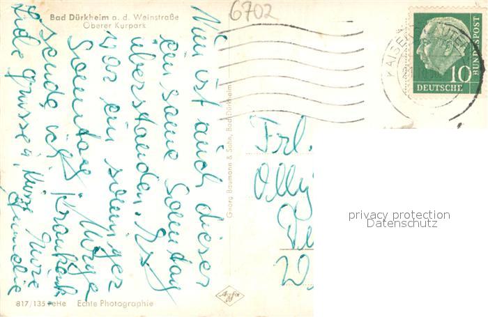 73694618 alte Postkarte Bad Duerkheim Oberer Kurpark postalisch gelaufen Erhaltung siehe scans [FriedD77] KatCode: 11110007332002