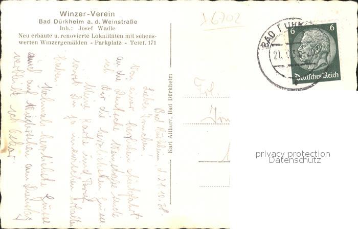 41791510 alte Postkarte Bad Duerkheim Panorama Winzer Verein Deutsche Weinstrasse postalisch gelaufen Erhaltung siehe scans KatCode: 11110007332002