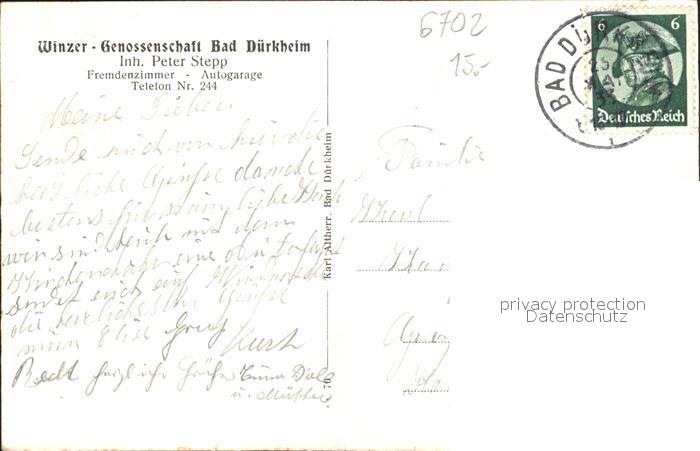 72148904 alte Postkarte Bad Duerkheim Panorama Winzergenossenschaft postalisch gelaufen Erhaltung siehe scans KatCode: 11110007332002