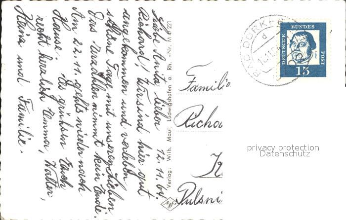 72444865 alte Postkarte Bad Duerkheim Ruine Limburg Standbild Pfaelzer Winzer Kuranlagen Kurgarten Grosses Fass Ruine Hardenburg Ed Jost Denkmal Waldgaststaette Isenach postalisch gelaufen Erhaltung siehe scans KatCode: 11110007332002