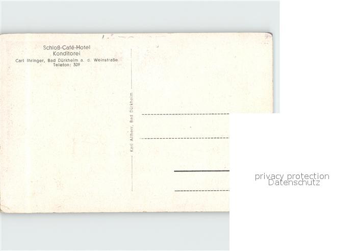 71998370 Bad Duerkheim Schloss Cafe Hotel Pension Ihringer postalisch nicht gelaufen KatCode: 11110007332002