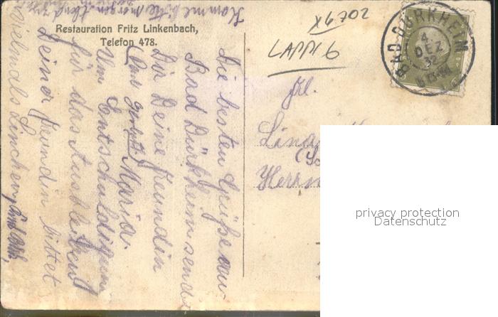 41793431 alte Postkarte Bad Duerkheim Turn- Festhalle Jahnsaal postalisch gelaufen Erhaltung siehe scans KatCode: 11110007332002