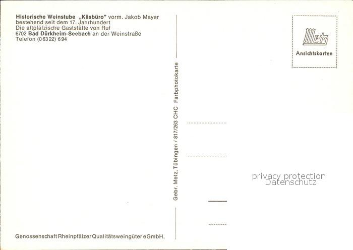 72548300 Bad Duerkheim Weisntube Kasbuero postalisch nicht gelaufen Erhaltung siehe scans [LiesaD40 kv019box] KatCode: 11110007332002