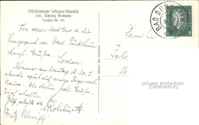 32158852 alte Postkarte Bad Duerkheim Winzer- Verein postalisch gelaufen Erhaltung siehe scans KatCode: 11110007332002