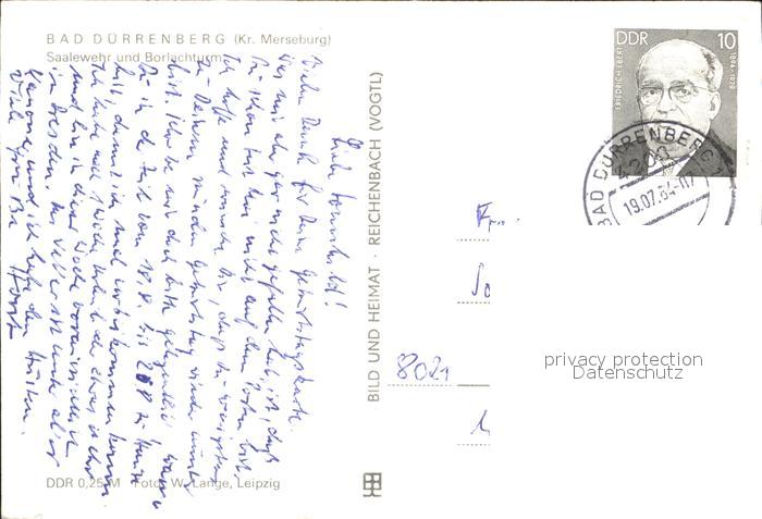 72356175 alte Postkarte Bad Duerrenberg Saalewehr Borlachturm postalisch gelaufen Erhaltung siehe scans KatCode: 11110015088020