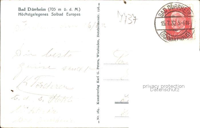 31841526 alte Postkarte Bad Duerrheim postalisch gelaufen Erhaltung siehe scans KatCode: 11110008326003