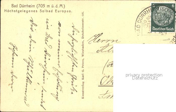 71839982 alte Postkarte Bad Duerrheim postalisch gelaufen KatCode: 11110008326003
