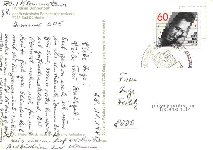 74109835 alte Postkarte Bad Duerrheim BW Kurklinik Sonnenbuehl postalisch gelaufen Erhaltung siehe scans [IrynaD87] KatCode: 11110008326003
