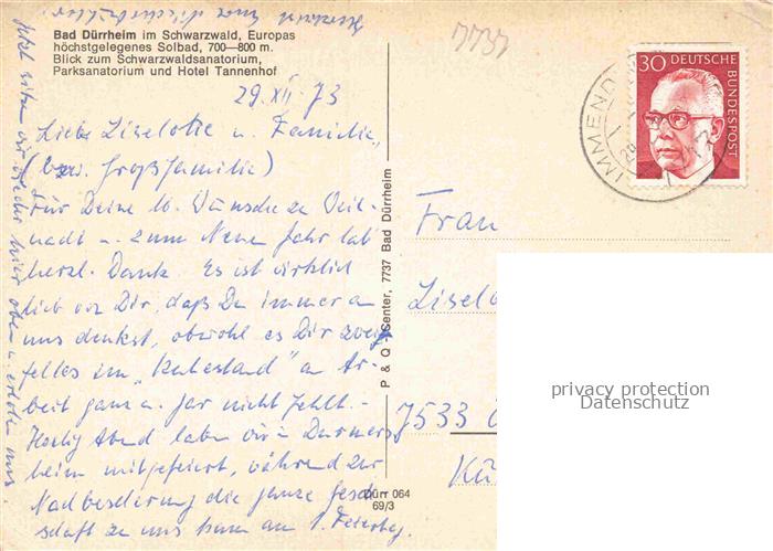 74101649 alte Postkarte Bad Duerrheim BW Schwarzwaldsanatorium Parksanatorium und Hotel Tannenhof postalisch gelaufen Erhaltung siehe scans [WerneD78] KatCode: 11110008326003