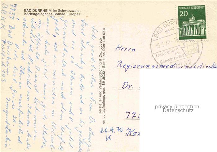 74085253 alte Postkarte Bad Duerrheim BW Solbad Kurhaus Fliegeraufnahme postalisch gelaufen Erhaltung siehe scans [WerneD78] KatCode: 11110008326003