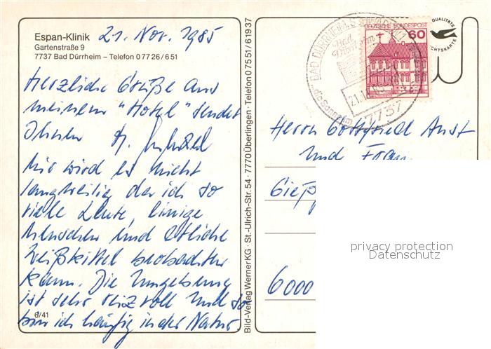 72969813 alte Postkarte Bad Duerrheim Espan-Klinik mit Schwimmbad postalisch gelaufen Erhaltung siehe scans [LiesaD40] KatCode: 11110008326003
