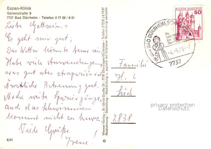 72969826 alte Postkarte Bad Duerrheim Espan-Klinik Schwimmbad postalisch gelaufen Erhaltung siehe scans [LiesaD40] KatCode: 11110008326003