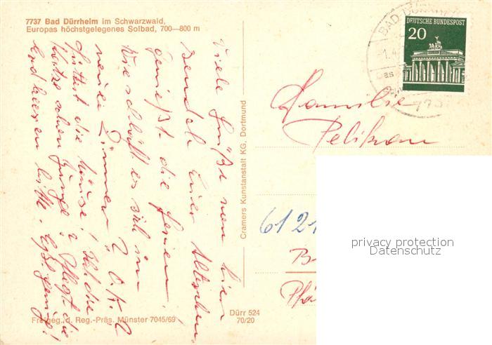 73170552 alte Postkarte Bad Duerrheim Europas hoechstgelegenes Solbad Fliegeraufnahme postalisch gelaufen Erhaltung siehe scans [FriedD77] KatCode: 11110008326003