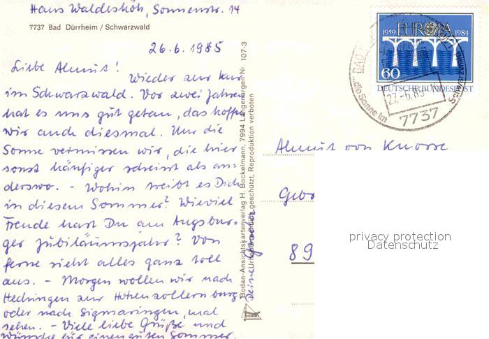 72845061 alte Postkarte Bad Duerrheim Europas hoechstgelegenes Solbad im Schwarzwald postalisch gelaufen Erhaltung siehe scans [FriedD77] KatCode: 11110008326003