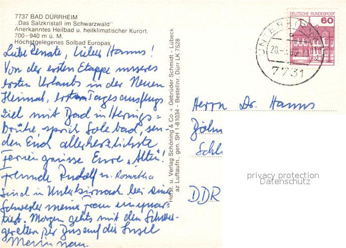 73107435 alte Postkarte Bad Duerrheim Fliegeraufnahme postalisch gelaufen Erhaltung siehe scans [NatalD47] KatCode: 11110008326003