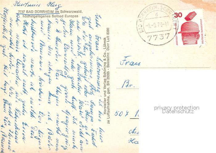 73017739 alte Postkarte Bad Duerrheim Fliegeraufnahme postalisch gelaufen Erhaltung siehe scans [WerneD78] KatCode: 11110008326003