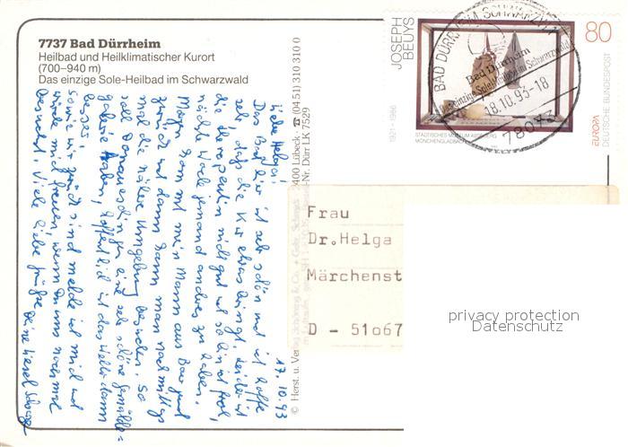 73009217 alte Postkarte Bad Duerrheim Fliegeraufnahme postalisch gelaufen Erhaltung siehe scans [WerneD78] KatCode: 11110008326003