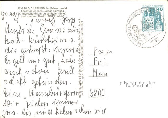 71989098 alte Postkarte Bad Duerrheim Fliegeraufnahme Kindersanatorium Luisenheim Kindersolbad postalisch gelaufen Erhaltung siehe scans KatCode: 11110008326003