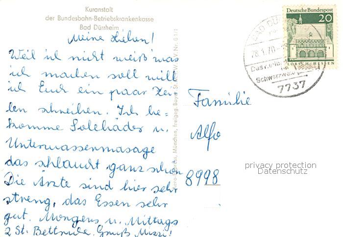 73281610 alte Postkarte Bad Duerrheim Fliegeraufnahme Kuranstalt postalisch gelaufen Erhaltung siehe scans [NatalD47] KatCode: 11110008326003