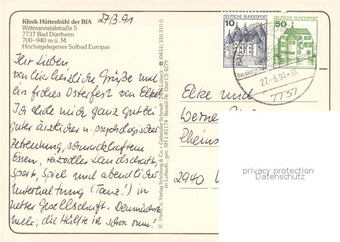 73647886 alte Postkarte Bad Duerrheim Fliegeraufnahme mit Klinik Huettenbuehl postalisch gelaufen Erhaltung siehe scans [WerneD78] KatCode: 11110008326003
