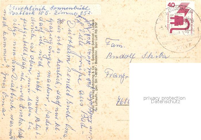73322887 alte Postkarte Bad Duerrheim Fliegeraufnahme mit Kurklinik Sonnenbuehl postalisch gelaufen Erhaltung siehe scans [WerneD78] KatCode: 11110008326003