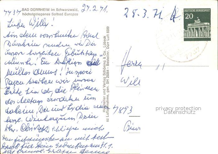 71831747 alte Postkarte Bad Duerrheim Fliegeraufnahme Solbad postalisch gelaufen Erhaltung siehe scans KatCode: 11110008326003